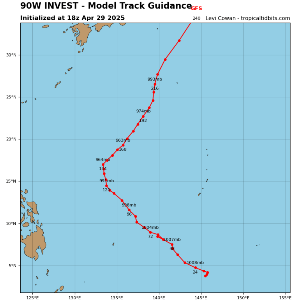 Tiny tropical storm in the WPAC. Apr 29 2025. GFS.