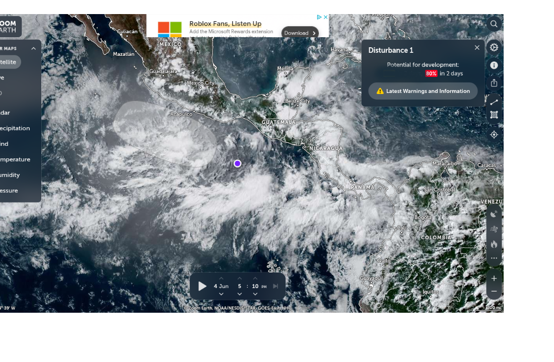 The disturbance on the western coast of Mexico will be forming more, it went from 40% in the next 7 days, to 60% chance of formation in the next 7 days, this means that it could form into a tropical storm by next week.