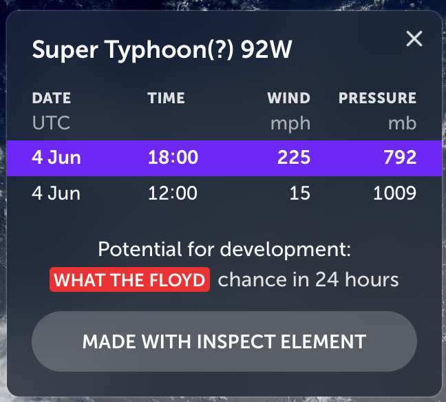 Don’t worry 35° is average for June. It will go up to 40° in September. You just time traveled to year 3500. The strongest storm as of now is Typhoon Isi-ga (made-up name) which was 405mph 698mbar in 3402. You may go back to 2025. The image is fixed now.