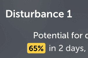 Disturbance 1- %in the next 2 days:40 | % in the next 7 days:80 Disturbance 2- %in the next 2 days:10 | %in the next 7 days:40