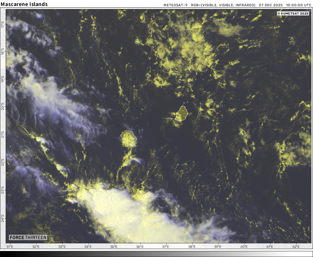 Satellite ImageryNear Real-time Satellite Imagery- More Sector Imagery -Gulf of Mexico (Gulf of America)Bay of BengalCONUSMascarene IslandsSouth-West Indian OceanMediterranean SeaNorth Indian Ocean Standard ImageryVisibleNatural ColorShortwave IRWater VaporFalse ColorRGBInfrared ImageryNoneAVNDvorakJSLOTTFunktopRainbowRBTOPZEHRComposite ImageryBlue MarbleRecommended LinksSST Radar Plots Precip MIMIC Product Tools Latest Image Animated GIFRecommended LinksSST Radar Plots Precip MIMIC